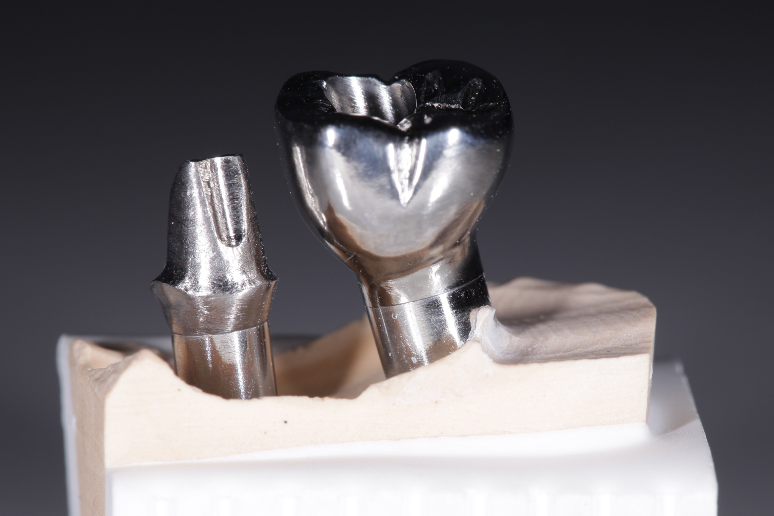 Right: One-piece abutment milled from the blank.
